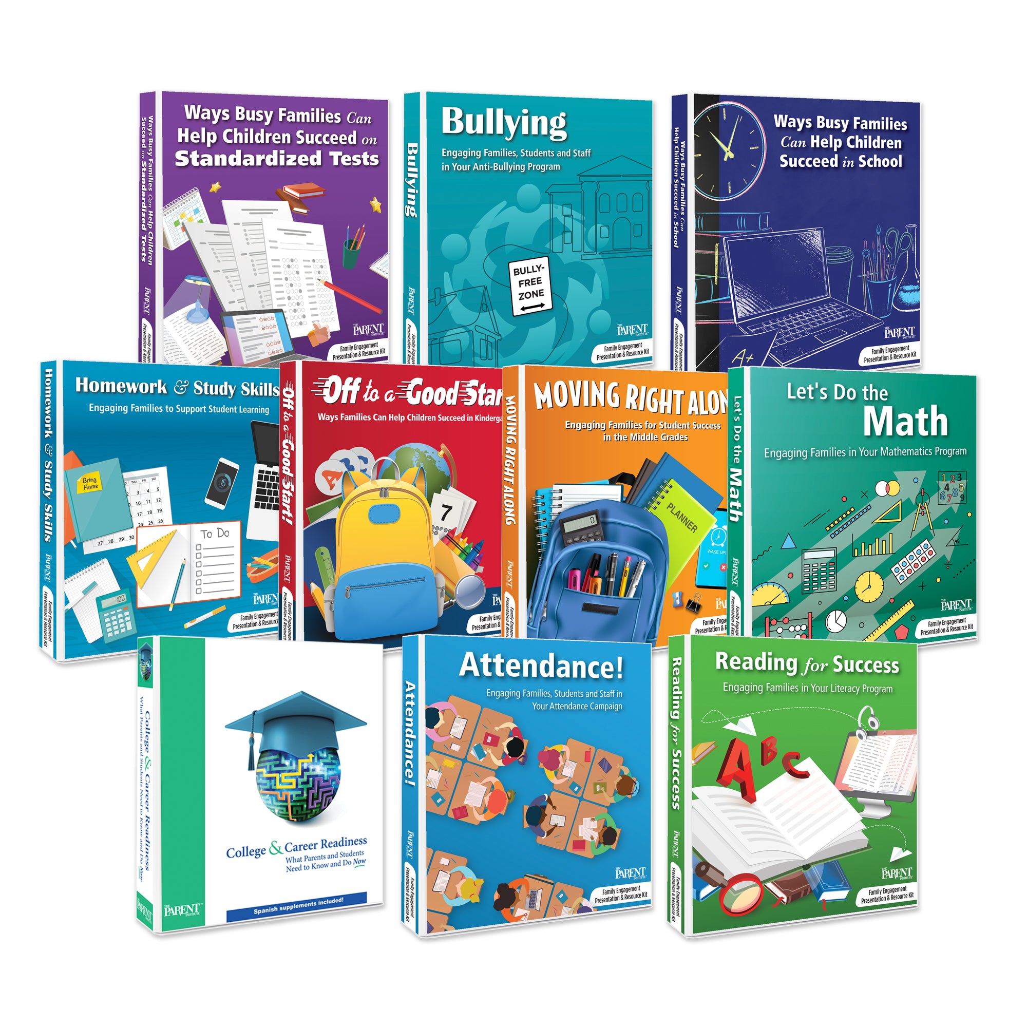 Available in English, and English with Spanish supplements, this bundle of 10 ready-made Resource Kits offers practical, easy-to-understand advice for parents on a variety of high-priority concerns.